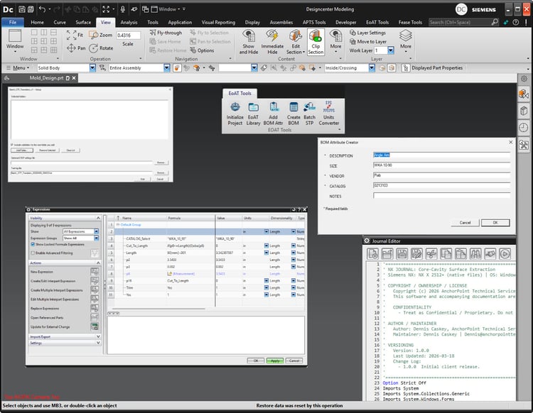 AnchorPoint Technical Services helps OEM/product teams and suppliers reduce tooling risk with DFM/feasibility and injection-ready part support—and improve productivity with Siemens NX / NX X customization, administration, and CAD support.
